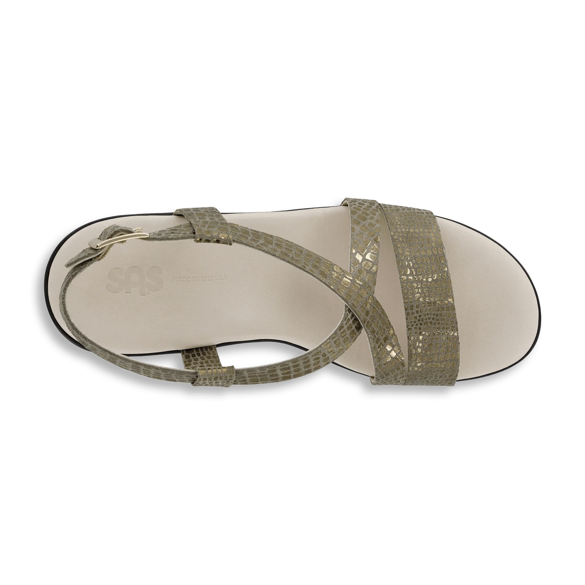 A chic wedge that can be dressy or casual, Delight lives up to its name. Soft leather lined straps gently wrap around the toes while criss-cross leather straps in a complimentary patterned leather surround the ankle. A plush leather foot bed underfoot and an adjustable ankle strap give a custom cushioned fit. The wedge heel has a wood grain look and a woven pattern on the outsole for traction and support.